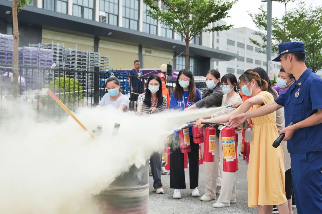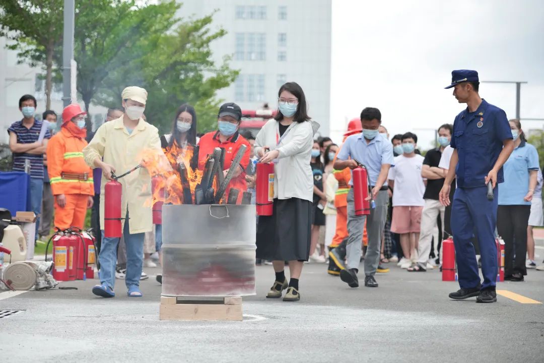 理论培训结束后,消防员现场示范灭火器使用方法,各公司员工热情高涨,纷纷上前参与灭火器实操演练,学习并掌握了灭火器的使用方法,并对如何在有效距离内进行灭火有了实际体验。